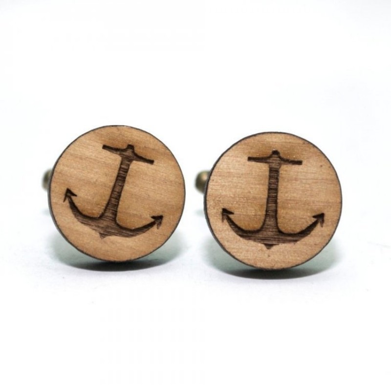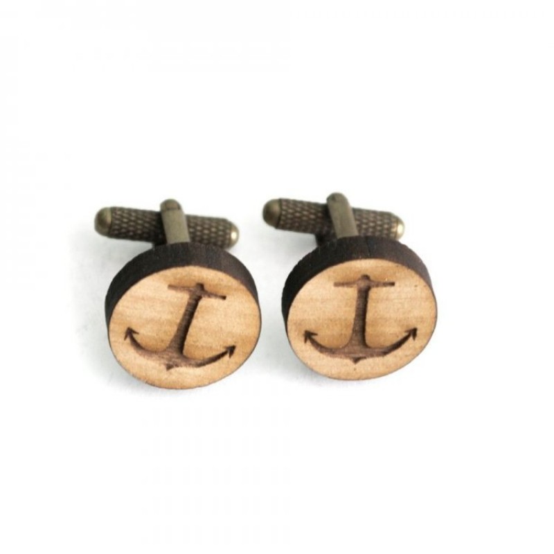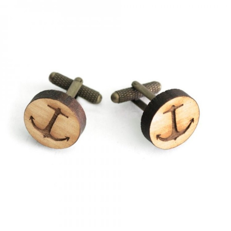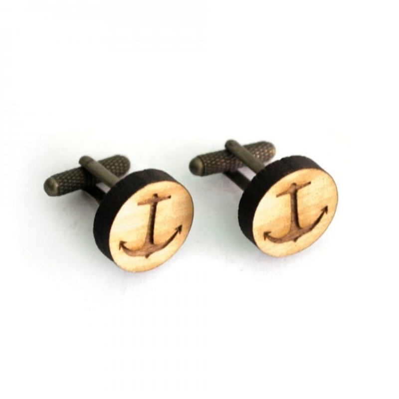 деревянные запонки круглые якорь обычный dzp-0608 Запонки