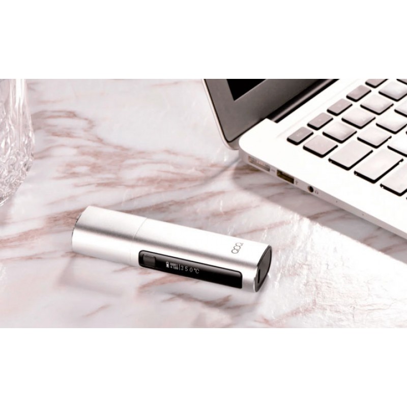 - LED дисплей отображает температуру, количество выкуренных стиков, время курения и заряд батареи