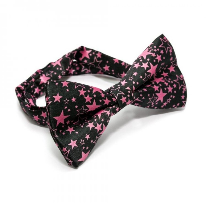 galstuk babochka chernaya s rozovymi zvezdochkami btm-1314