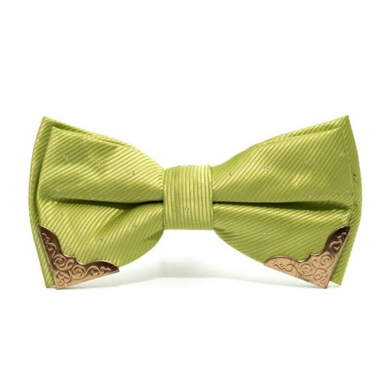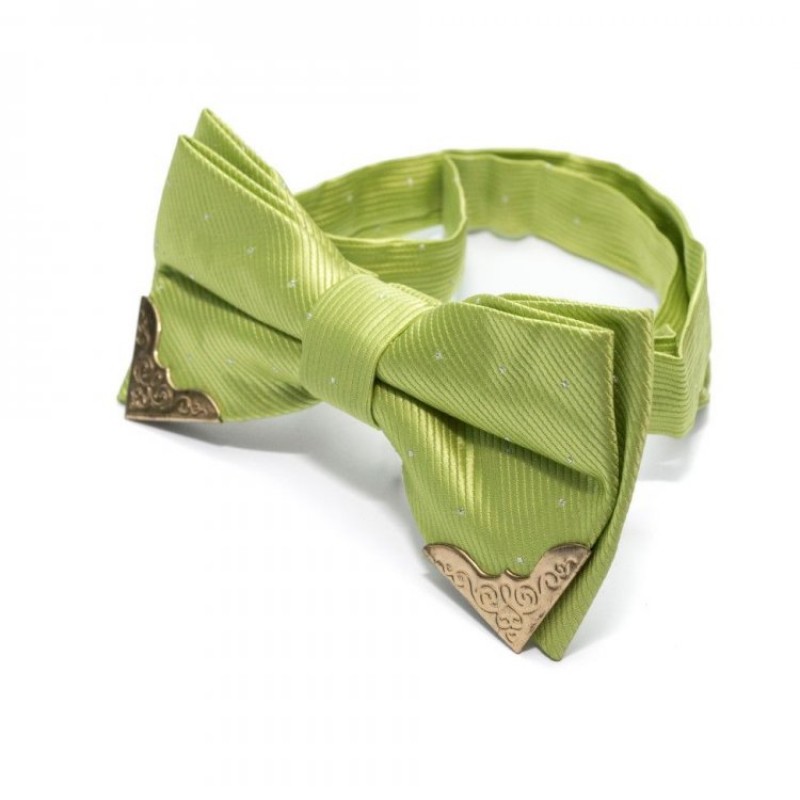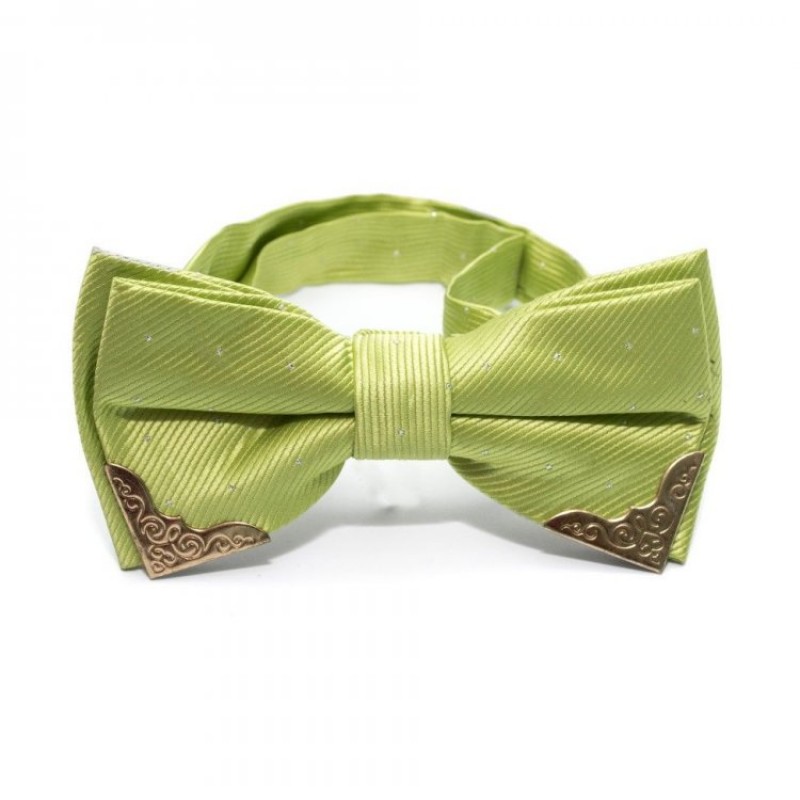Галстук Бабочка Яблочно-Зеленая С Металлическими Углами Bb-5107