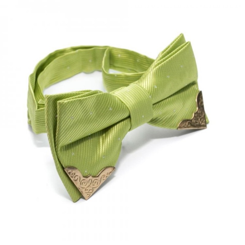 galstuk babochka yablochno-zelenaya s metallicheskimi uglami bb-5107