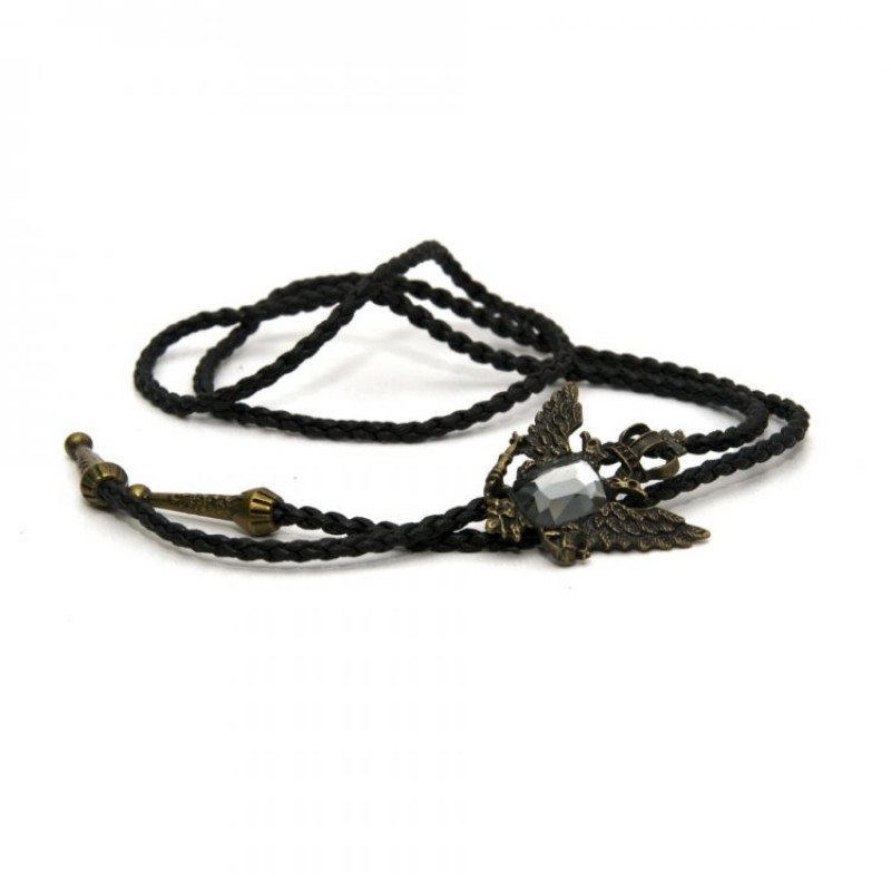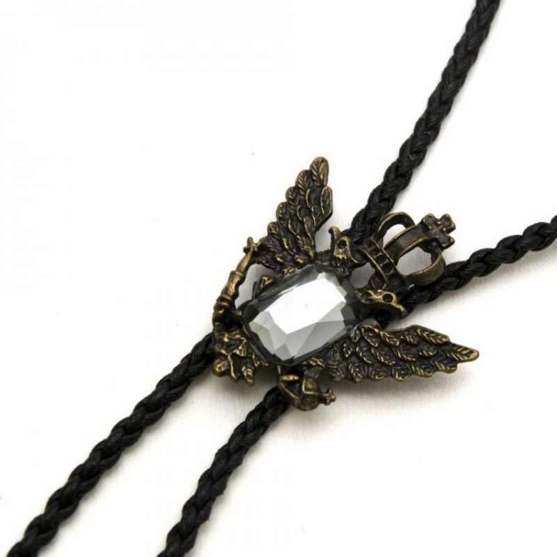 Боло представляет собой прочный кожаный шнурок, скрепленный оригинальной брошью-пряжкой из нержавеющего металла.