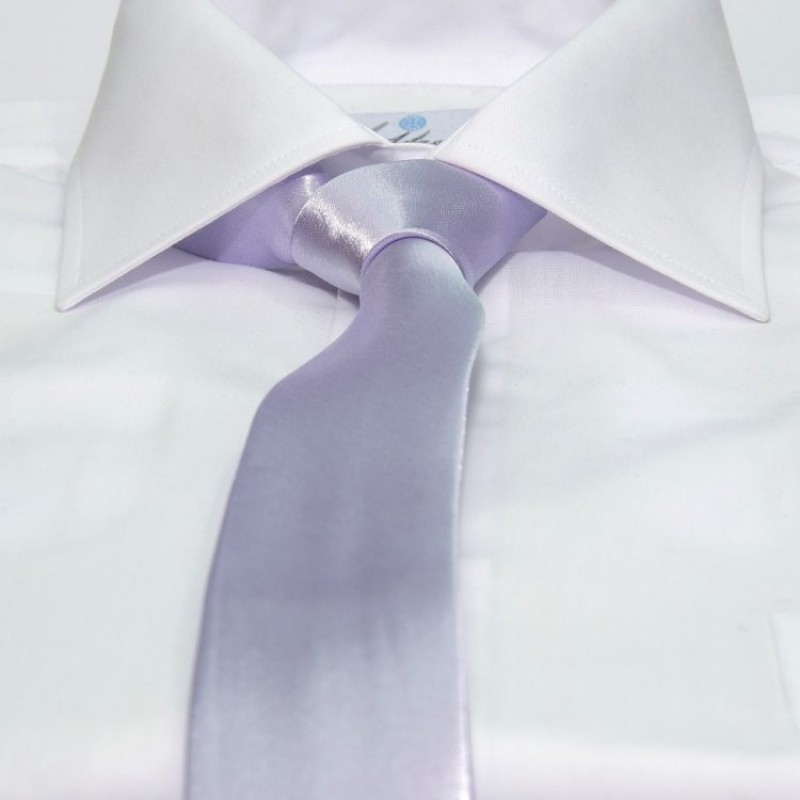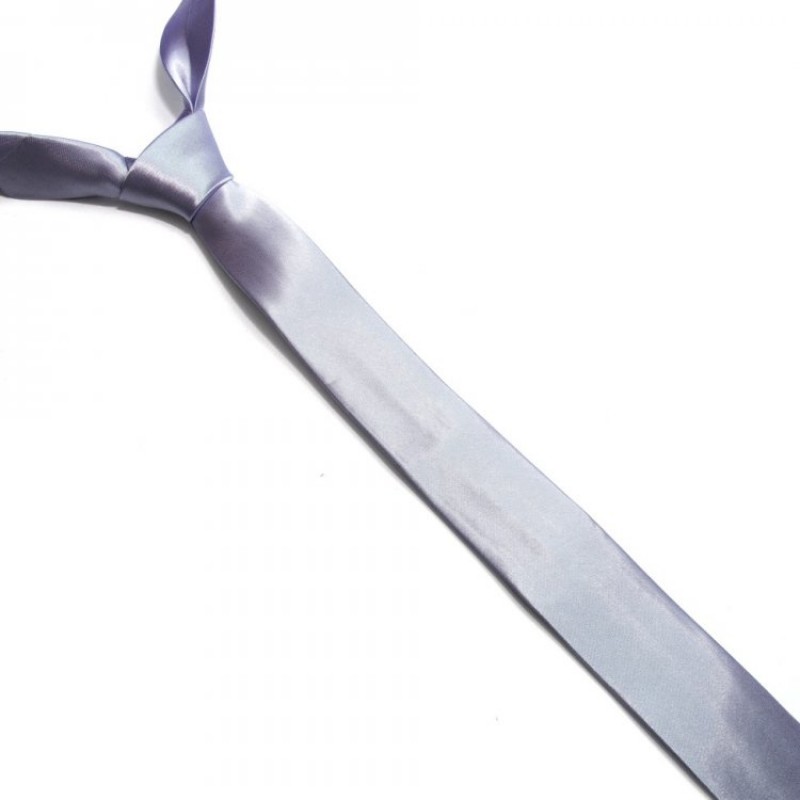 Узкий галстук отличается аккуратными прочными швами и качественным кроем.