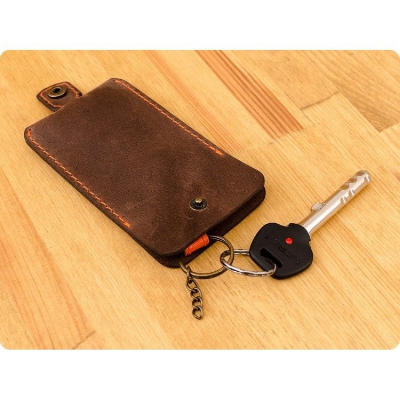 Удобная ключница для небольшого количества стандартных ключей закрывается с помощью кожаного ремешка и фиксируется кнопкой.